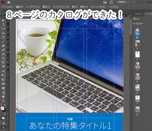 例としてAdobeStockからカタログのテンプレート、中の写真は写真ACから拝借しました。