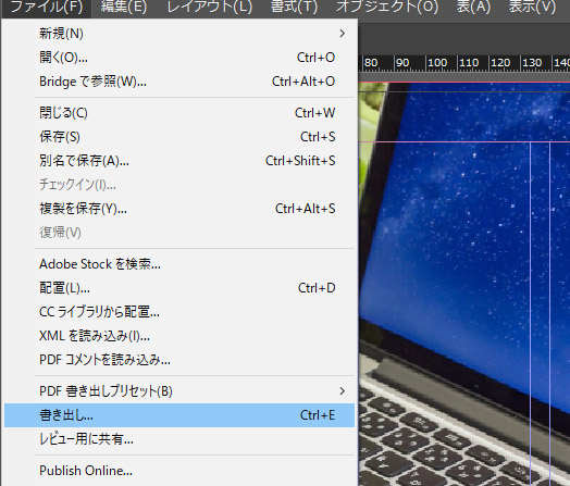 「ファイル」→「書き出し」