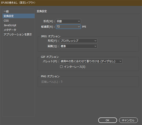 変換設定:解像度72PPIにしています(私はあまり気になりません)
