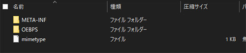 フォルダ:「META-INF」「OEBPS」
